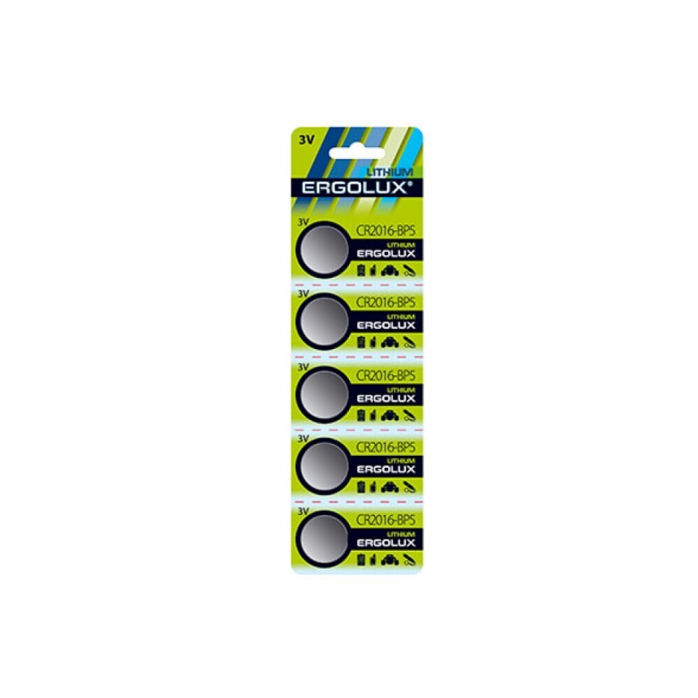 Батарейка Ergolux таблетка CR2016 3 В (100 шт.) (CR2016-BP5)