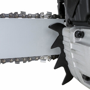 Модель имеет компактную шину длиной 400 мм, инструмент идеален для работ в труднодоступных местах. Цепь пилы смазывается автоматически, с помощью специального масляного насоса. Механизм натяжения цепи расположен сбоку, обладает легкой настройкой. Цепь оснащена тормозной системой, поэтому пользователь пилы защищен от случайных отскоков инструмента.
