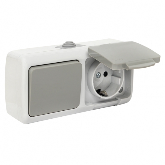 Блок выключатель и розетка EKF Мурманск одноклавишный накладной серый (EFRV16-050-30-540)