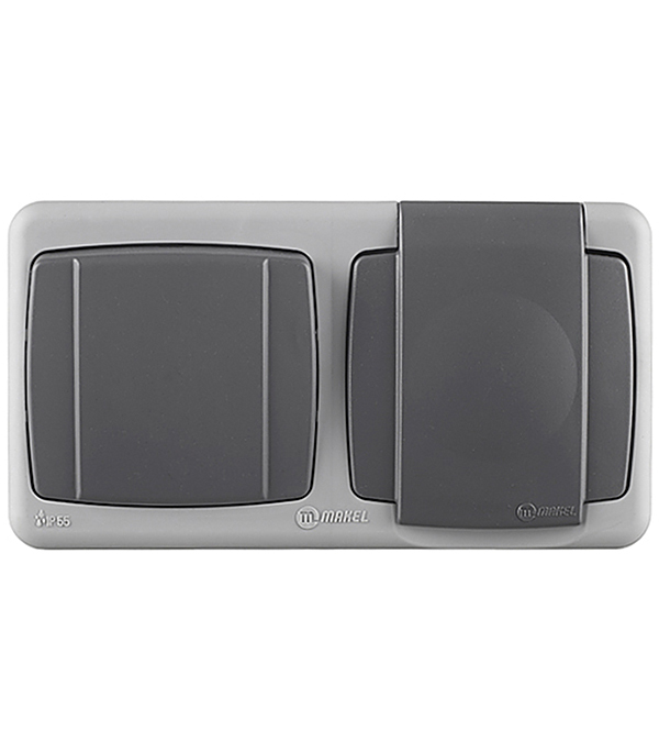Блок выключатель и розетка Makel Mimoza одноклавишный накладной серый (36064207)