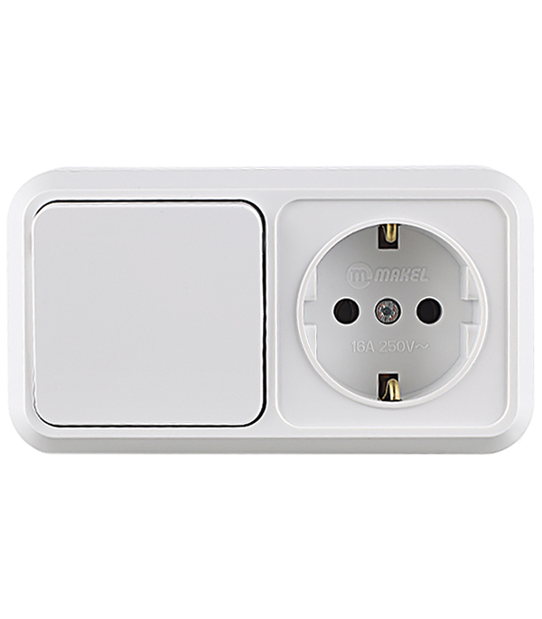 Блок выключатель и розетка Makel Siva Ustu одноклавишный накладной белый (451A1)