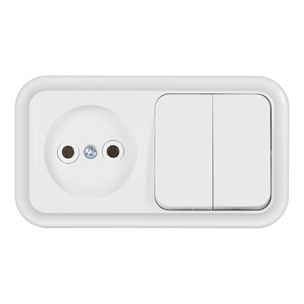 Блок выключатель и розетка Svet двухклавишный накладной белый (EV0362-5240)