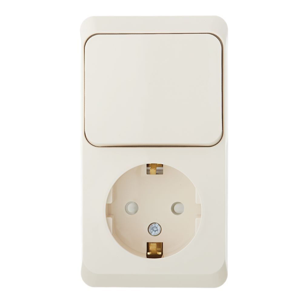 Блок выключатель и розетка Systeme Electric Этюд одноклавишный накладной кремовый (BPA16-201K)