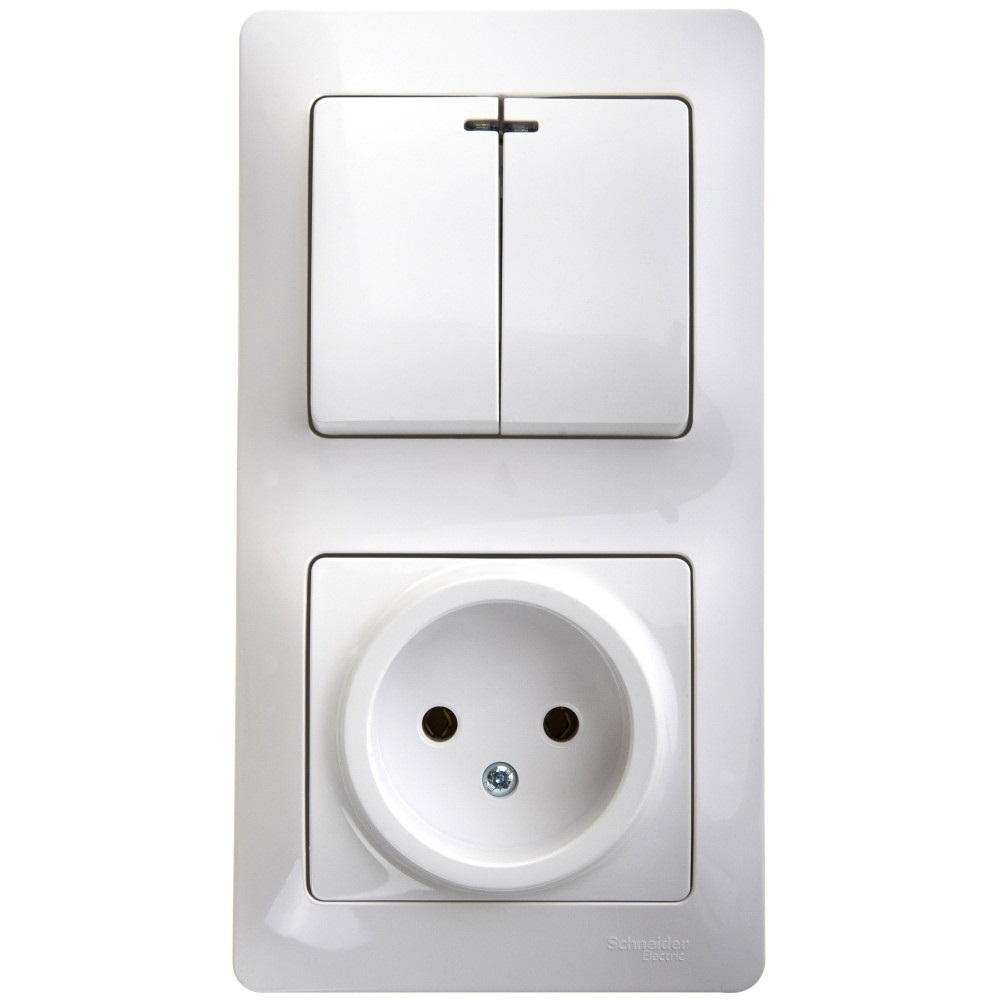 Блок комбинированный Systeme Electric (ранее Schneider Electric) серии Glossa (в сборе) предназначен для сетей до 250 В, состоит из розетки на 16 А и 2-клавишного выключателя с подсветкой на 10 А.