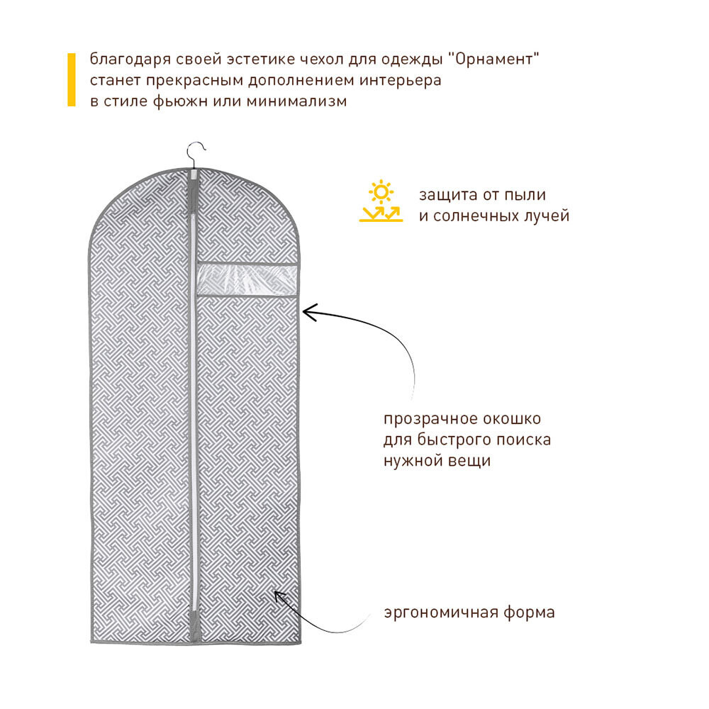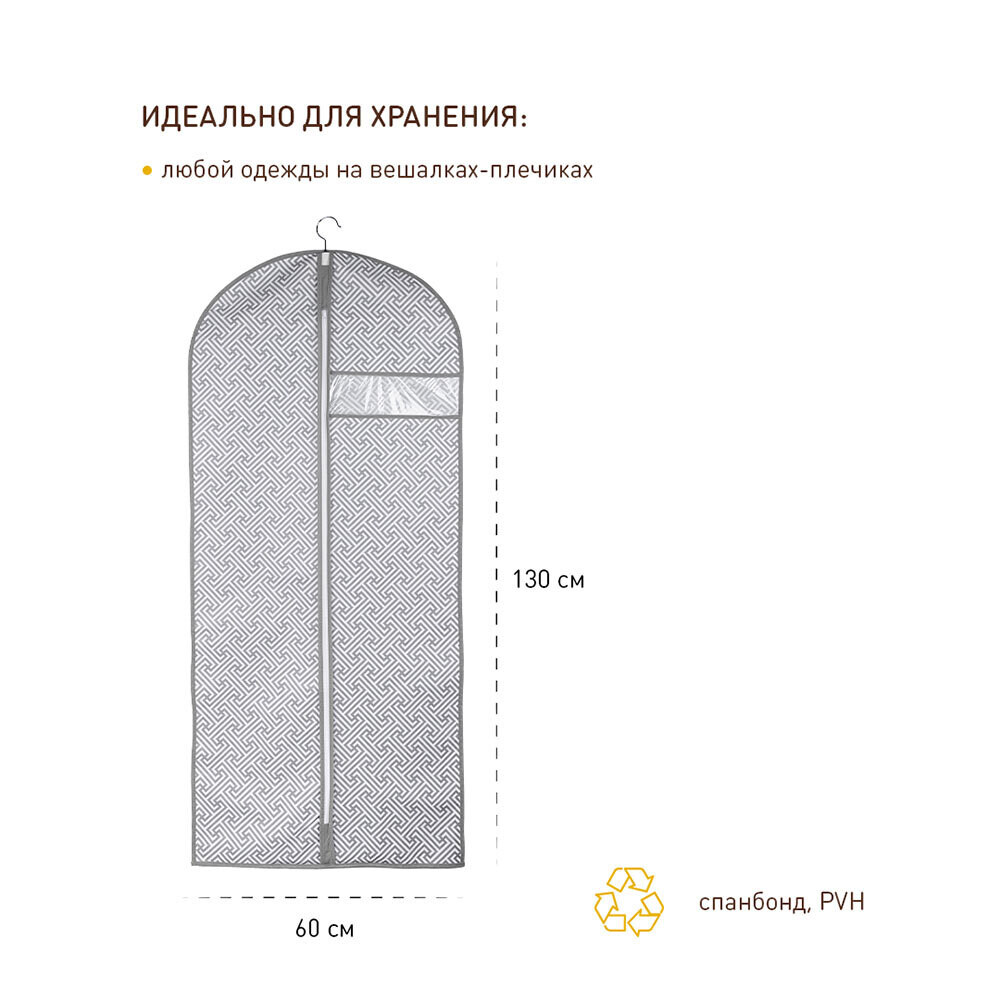 Главная / Каталог / Товары для дома / Хранение в доме / Чехлы для одежды и вешалки / Чехол для одежды Орнамент 1300х600 мм серый