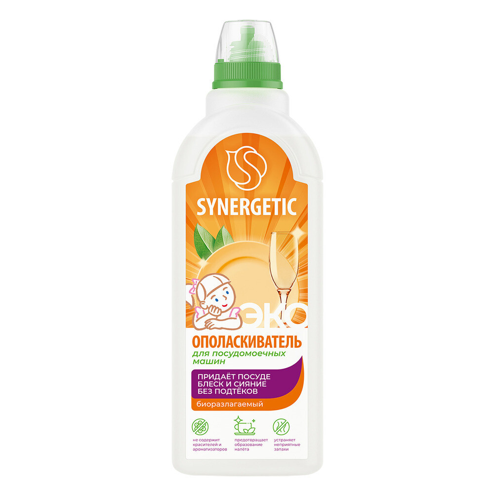 Биоразлагаемый ополаскиватель для посудомоечных машин Synergetic — это эффективное универсальное средство для всех типов посудомоечных машин. Комплекс биоразлагаемых кислот (лимонной, гликолевой и молочной) и растительных Н-тензидов нейтрализует остатки моющих компонентов, смягчает воду, защищает посудомоечную машину от коррозии и накипи. Средство придает блеск, ускоряет высыхание посуды и предотвращает образование налета. Устраняет неприятные запахи. Не содержит красителей, ароматизаторов, хлора, фосфатов. Биоразлагаемые компоненты не вредят микрофлоре септических установок при использовании средства в соответствии со способом применения.