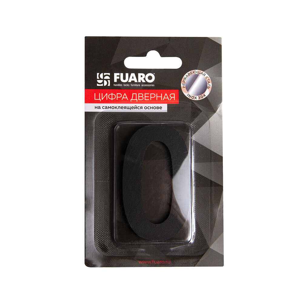 Цифра самоклеящаяся 0 Fuaro SS304 50х30 мм черная
