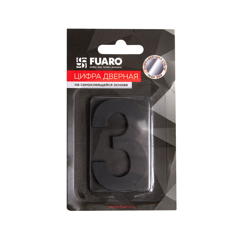 Цифра самоклеящаяся 3 Fuaro SS304 50х30 мм черная