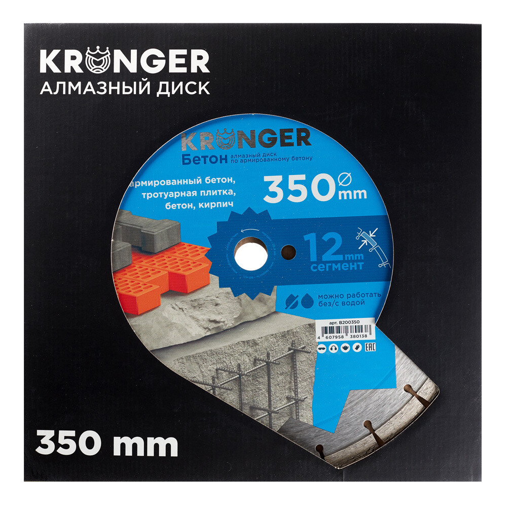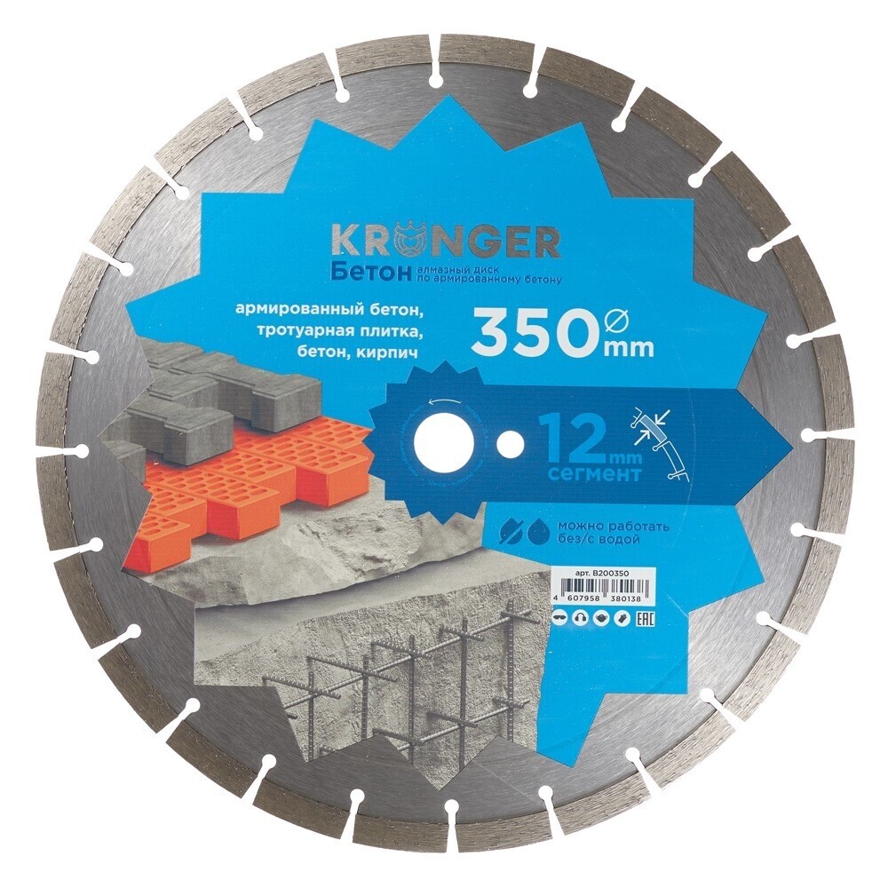 Диск алмазный по бетону Kronger Beton Blade 350×25,4×3 мм сегментный мокрый/сухой рез (B200350)