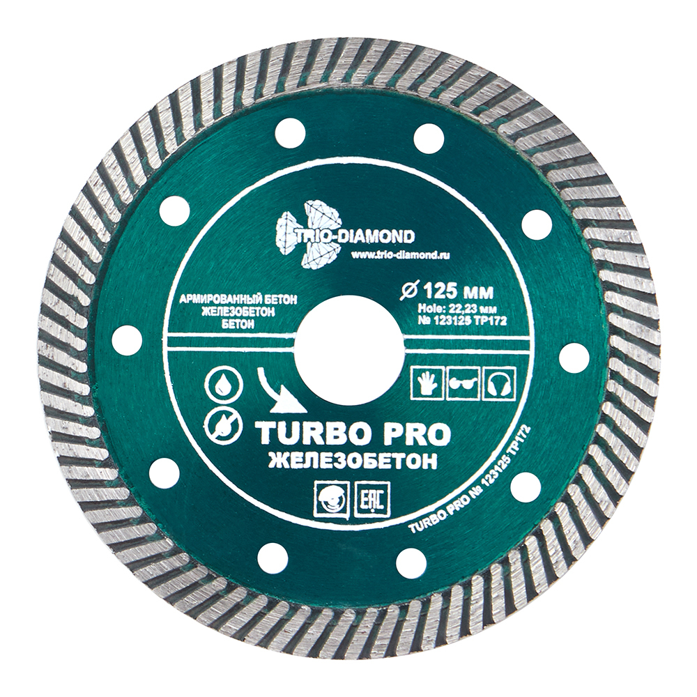 Диск алмазный по бетону Trio-Diamond Turbo Pro Железобетон 125х22,2х2,3 мм турбо сухой рез (TP172)