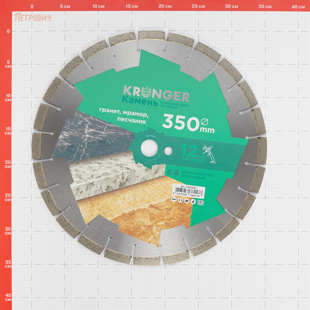 Диск алмазный по граниту Kronger Stone 350×25,4×3,8 мм сегментный мокрый/сухой рез (S200350)