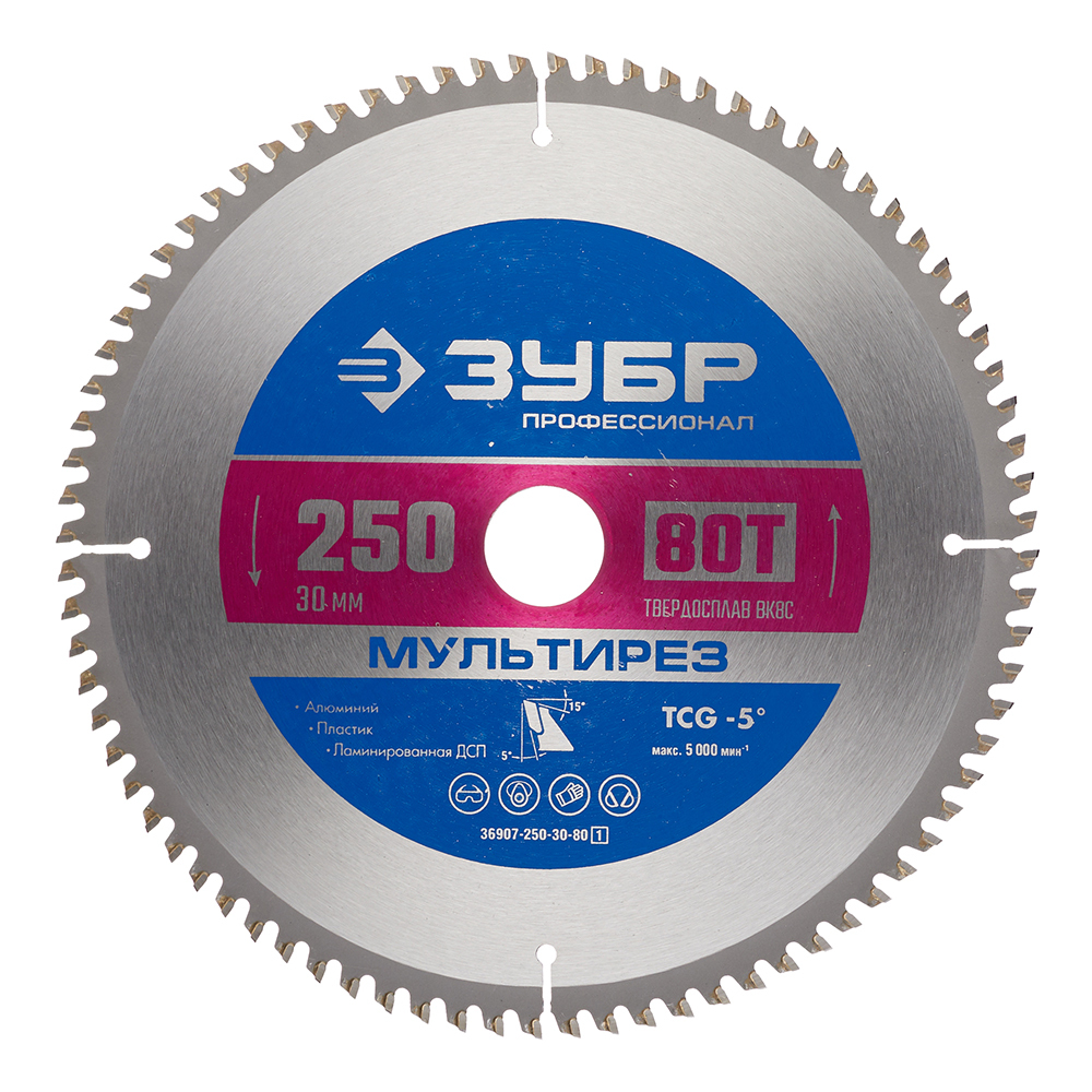 Диск пильный по алюминию Зубр 250х30х2 мм 80 зубьев (36907-250-30-80_z01)