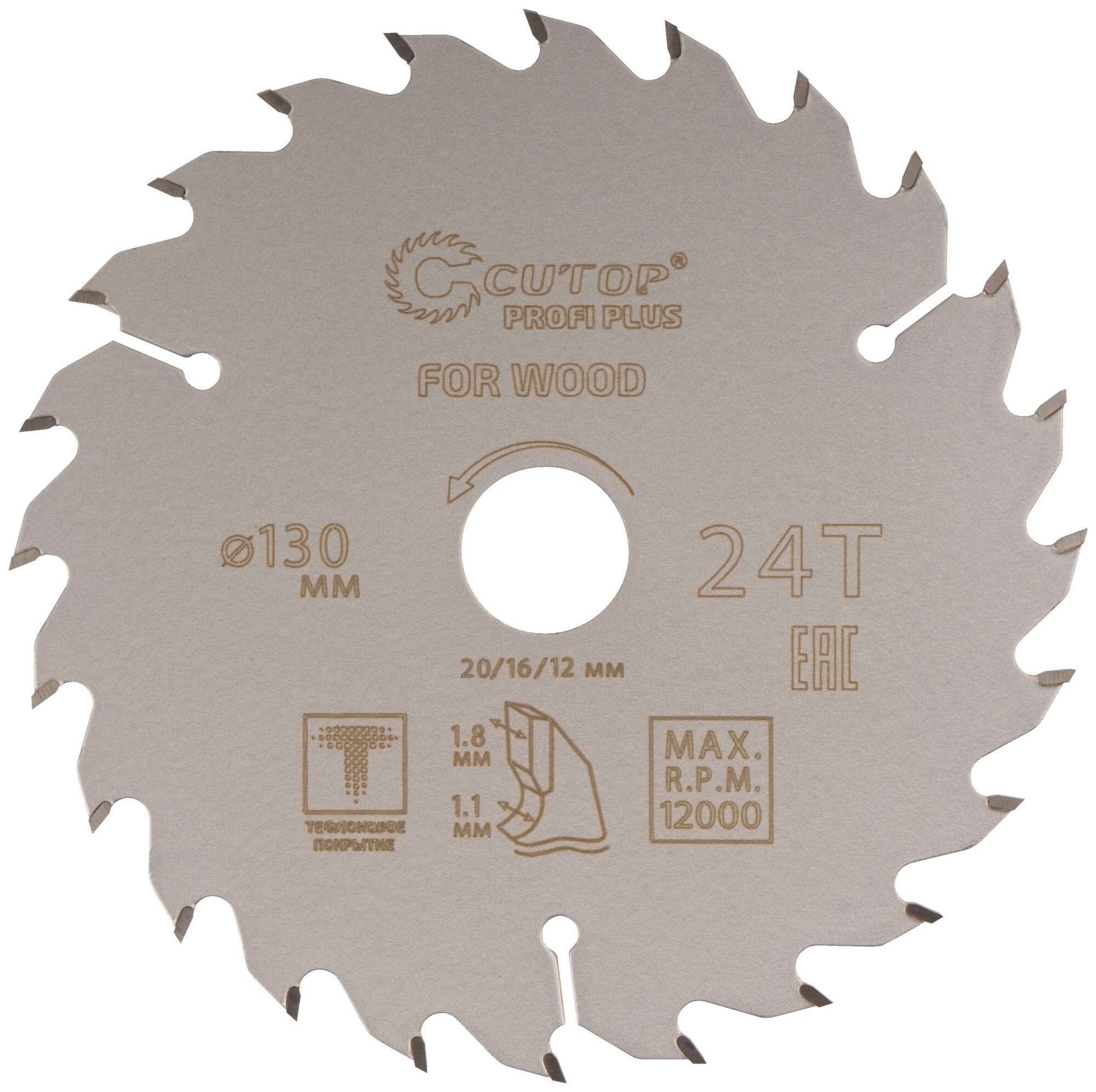 Диск пильный по дереву Cutop Profi plus 130х20/16/12х1,8 мм 24 зуба (75-13024Т)
