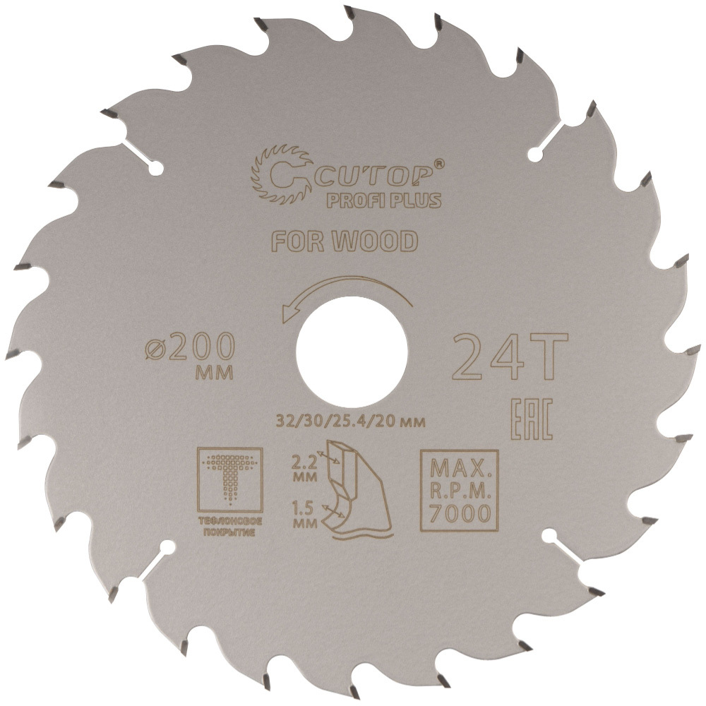 Диск пильный по дереву Cutop Profi plus 200х32/30/25,4/20х2,2 мм 24 зуба (75-20024Т)