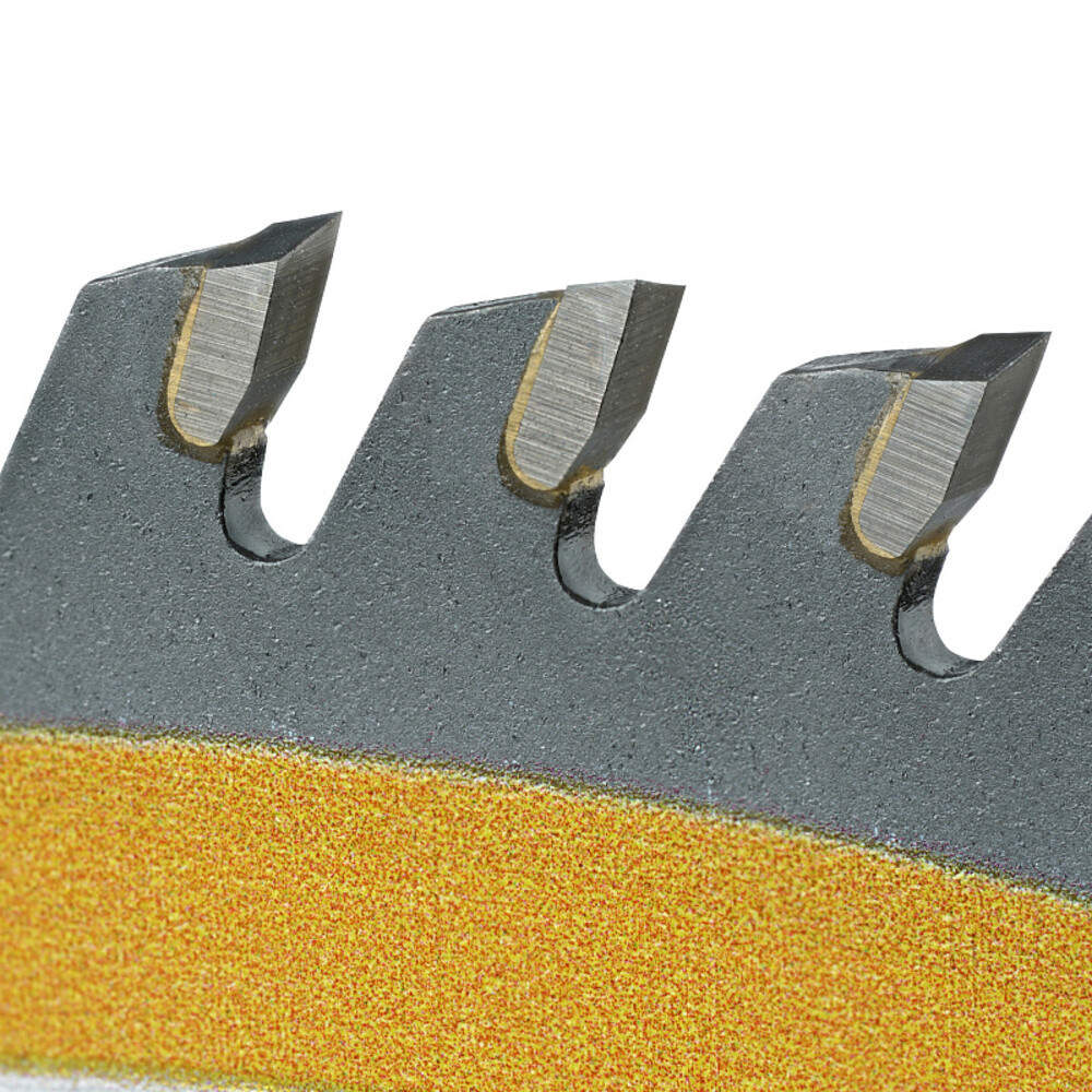 Диск пильный для работ по дереву, фанере, ДСП. Основа диска выполнена из углеродистой стали, напайки на режущих зубьях из твердого карбидно-вольфрамового сплава «победита». Качество сплава и размер твердосплавных напаек обеспечивают диску высокий рабочий ресурс, длительное сохранение скорости и качества реза, высокую пригодность к правке и заточке. Напаянные индуктивным способом твердосплавные переменные зубья с агрессивным углом резания АТВ обеспечивают одновременно быстрое и точное пиление.