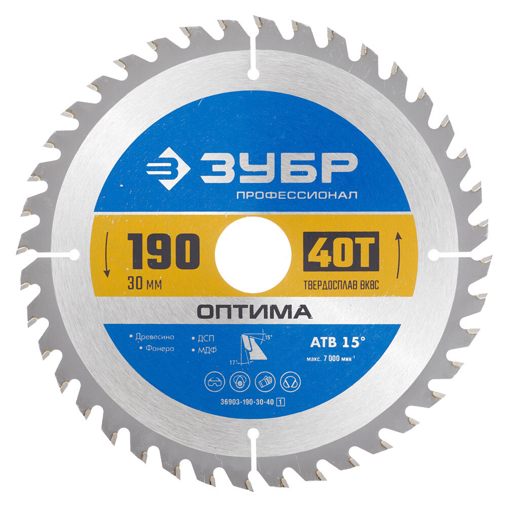 Диск пильный по дереву Зубр 190х30х1,6 мм 40 зубьев (36903-190-30-40_z01)