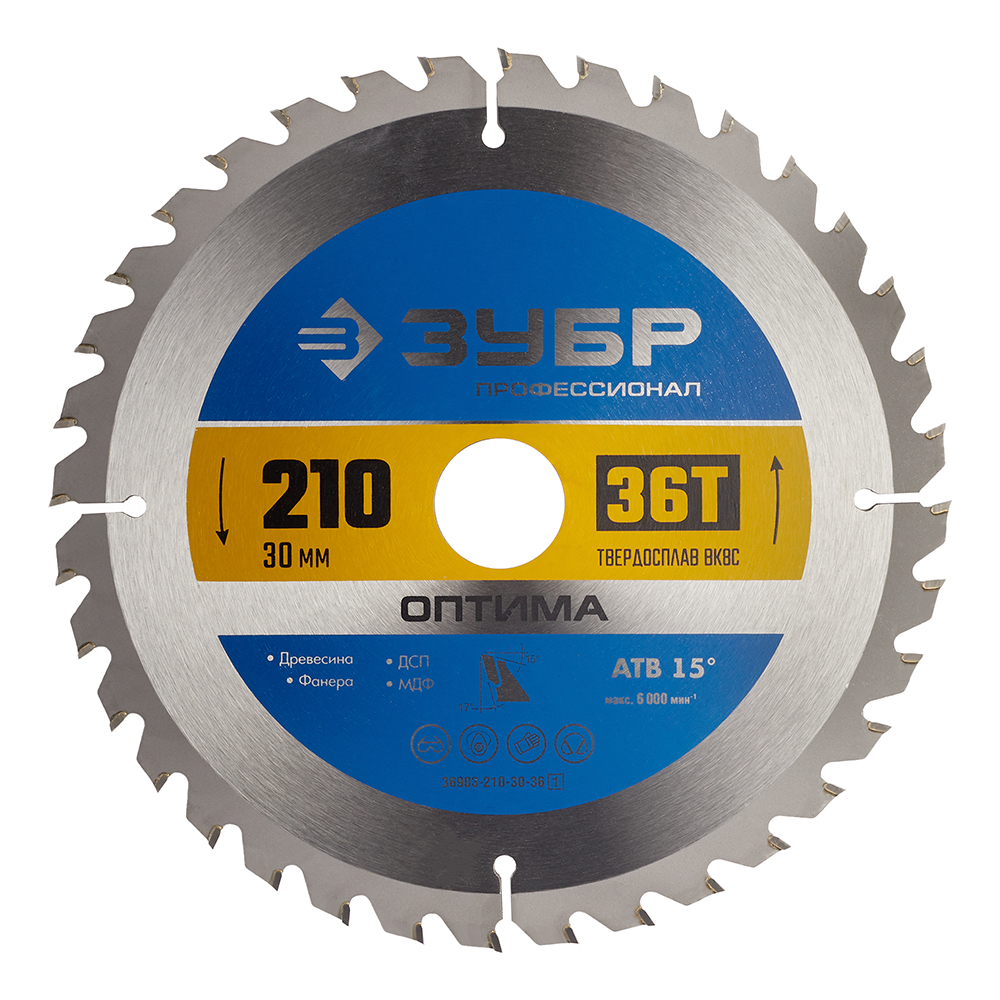 Диск пильный по дереву Зубр 210х30х1,8 мм 36 зубьев (36903-210-30-36_z01)