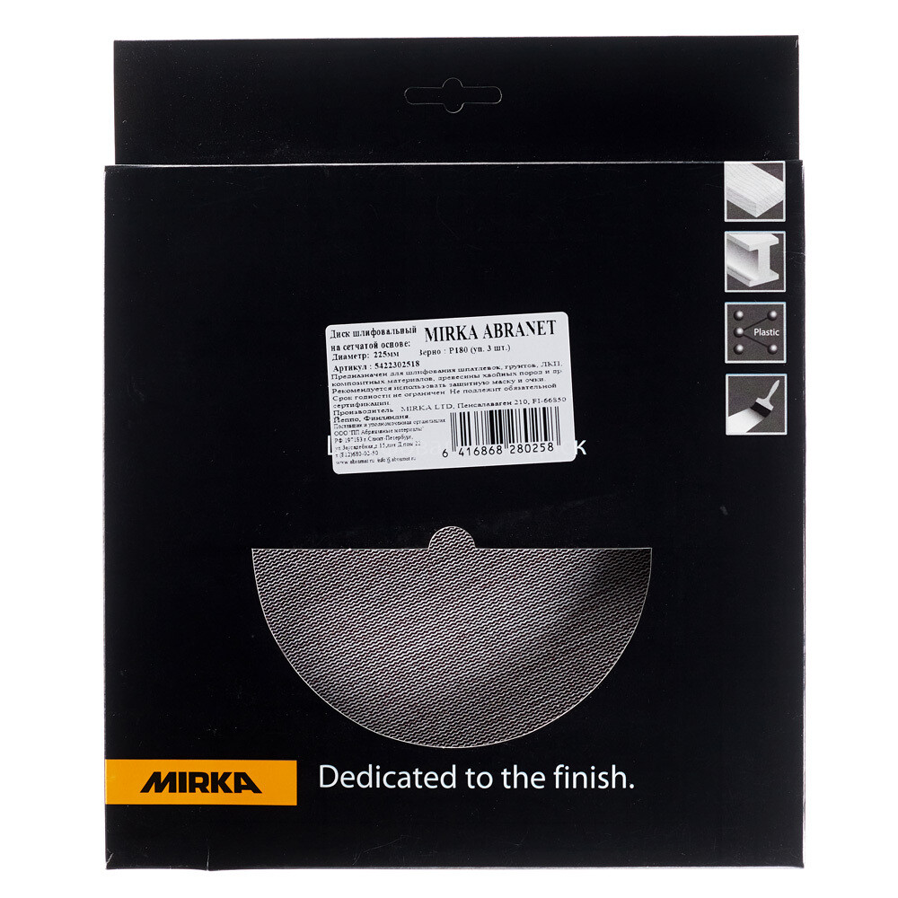 Диск шлифовальный Mirka Abranet d225 мм P180 на липучку сетчатая основа (3 шт.) (5422302518)