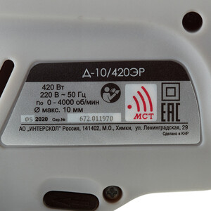 Дрель сетевая Интерскол Д-10/420ЭР 420 Вт быстрозажимной патрон (672.1.0.00)