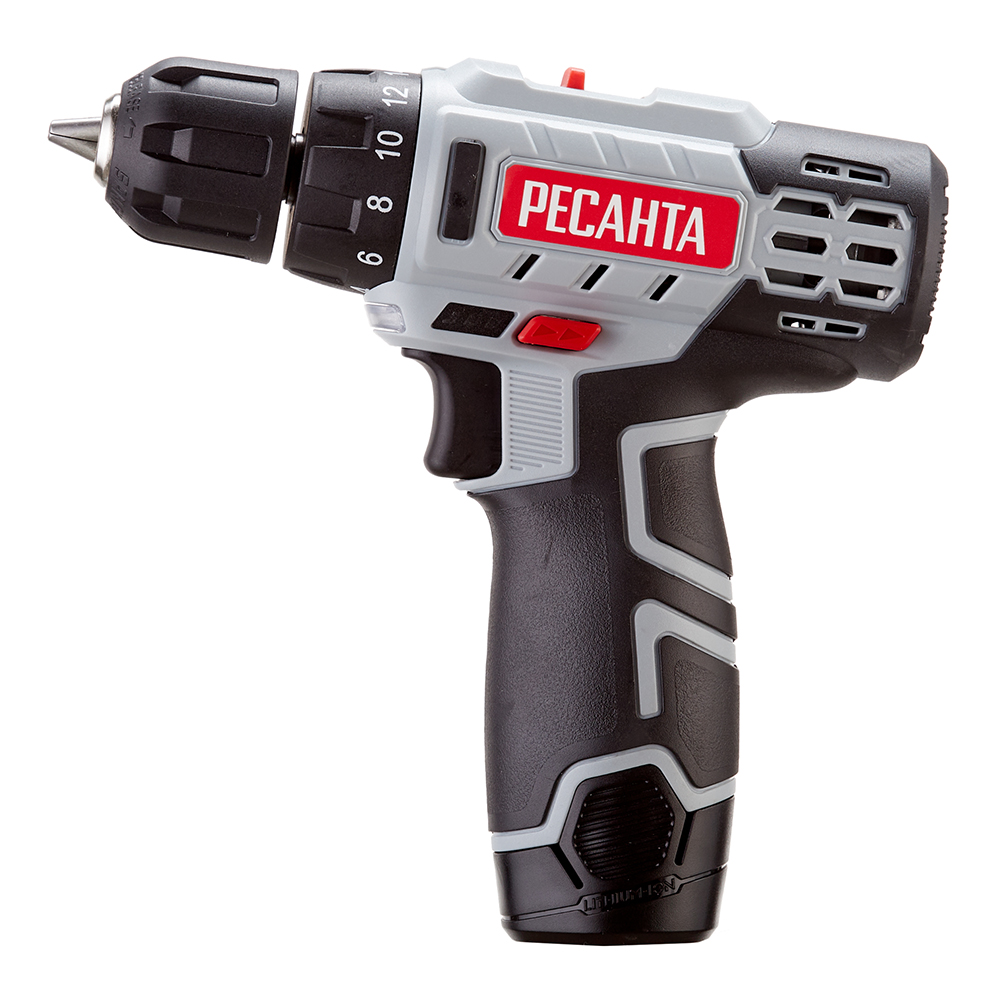Дрель-шуруповерт аккумуляторная Ресанта ДА-12-2ЛК 12 В 2 Ач Li-Ion 2 АКБ иЗУ (75/14/2)