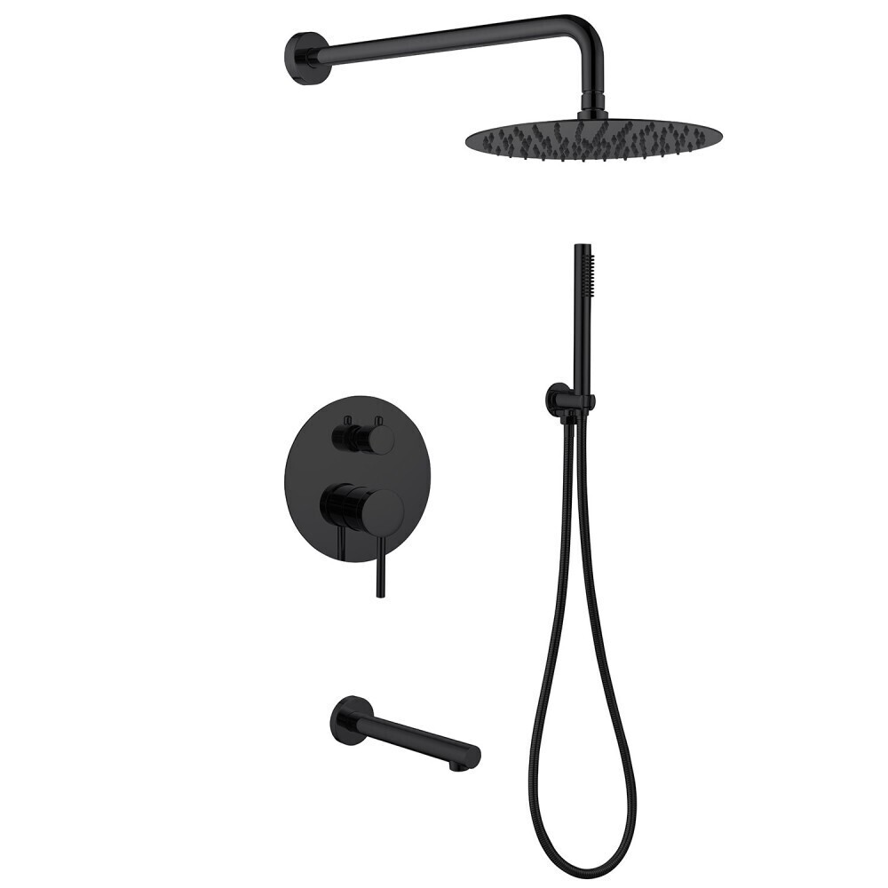 Душевая система Abber Emotion встраиваемая с верхним душем с лейкой со смесителем черная матовая (AF8817B)