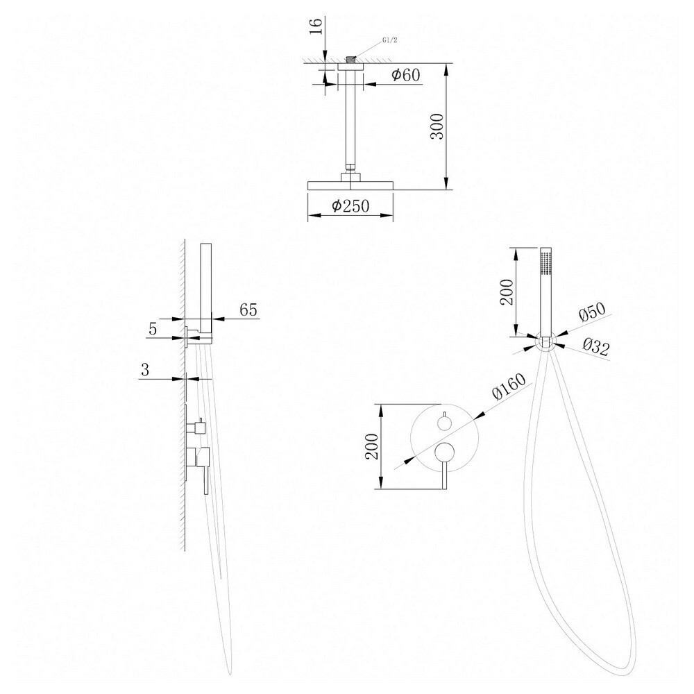 Душевая система Abber Emotion встраиваемая с верхним душем с лейкой со смесителем никель (AF8821NG)