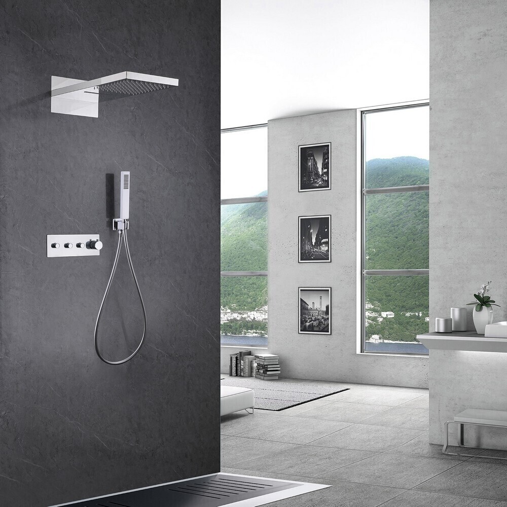 Душевая система Abber Rund встраиваемая с верхним душем с лейкой со смесителем хром (AF8752)