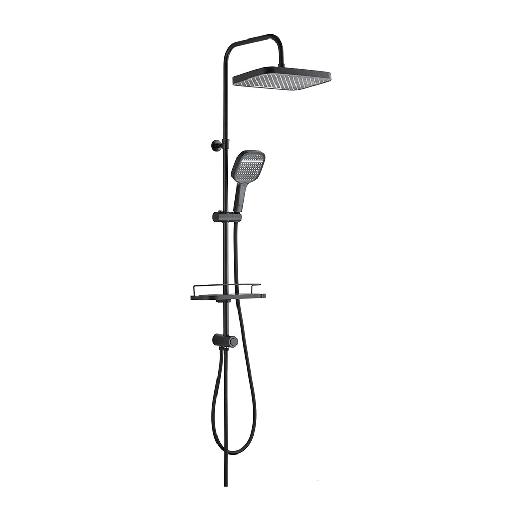 Душевой комплект с верхним душем и полкой черного матового цвета сочетает в себе современный дизайн и высокое качество.