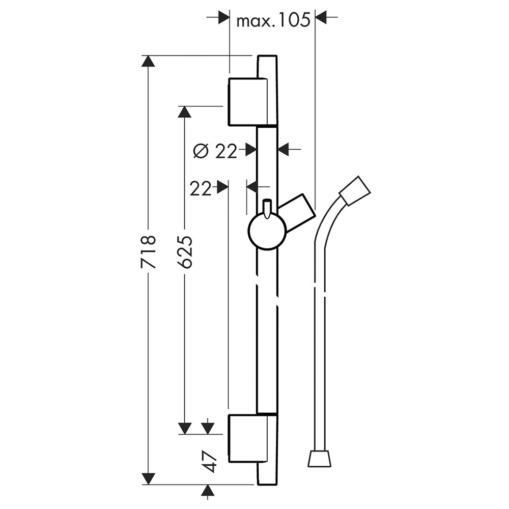 — диаметр душевой штанги — 22 мм;