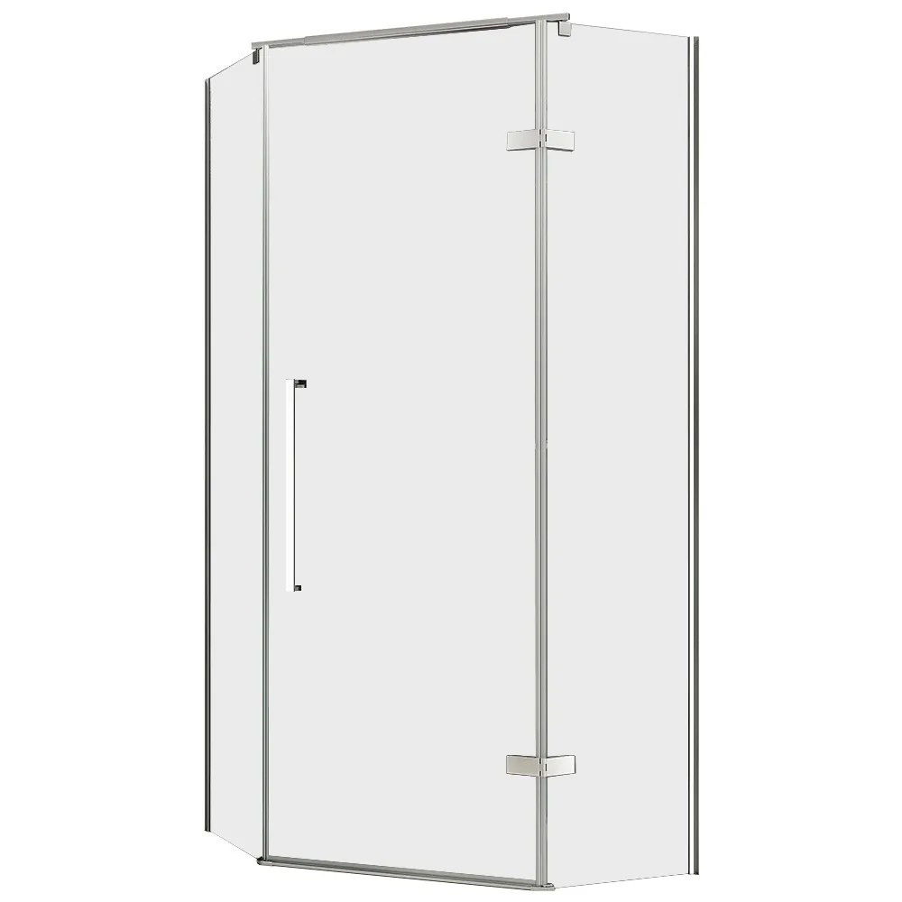 Пятиугольные душевые уголки Abber серии Ewiges Wasser с распашной дверью выполнены из прочного закаленного стекла 6 мм. Массивные латунные петли, большая металлическая ручка, комфортная высота — 195 см, возможна установка на пол или поддон.