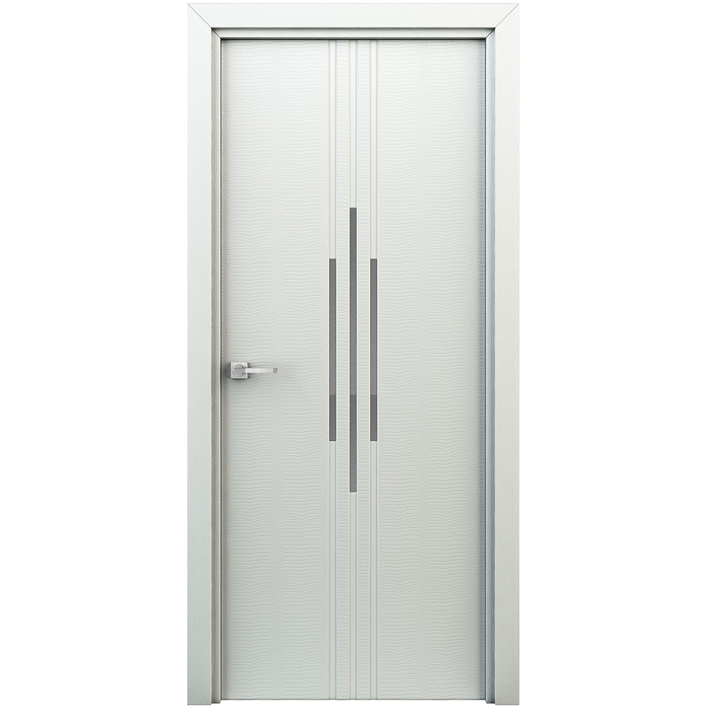 Дверное полотно Глухое с имитацией остекления. Каркас двери — горизонтальные перекладины и вертикальные стойки из МДФ, наполнение — картонный сотовый заполнитель, Поверхность полотна — ДВП плита, покрытая финиш-пленкой .