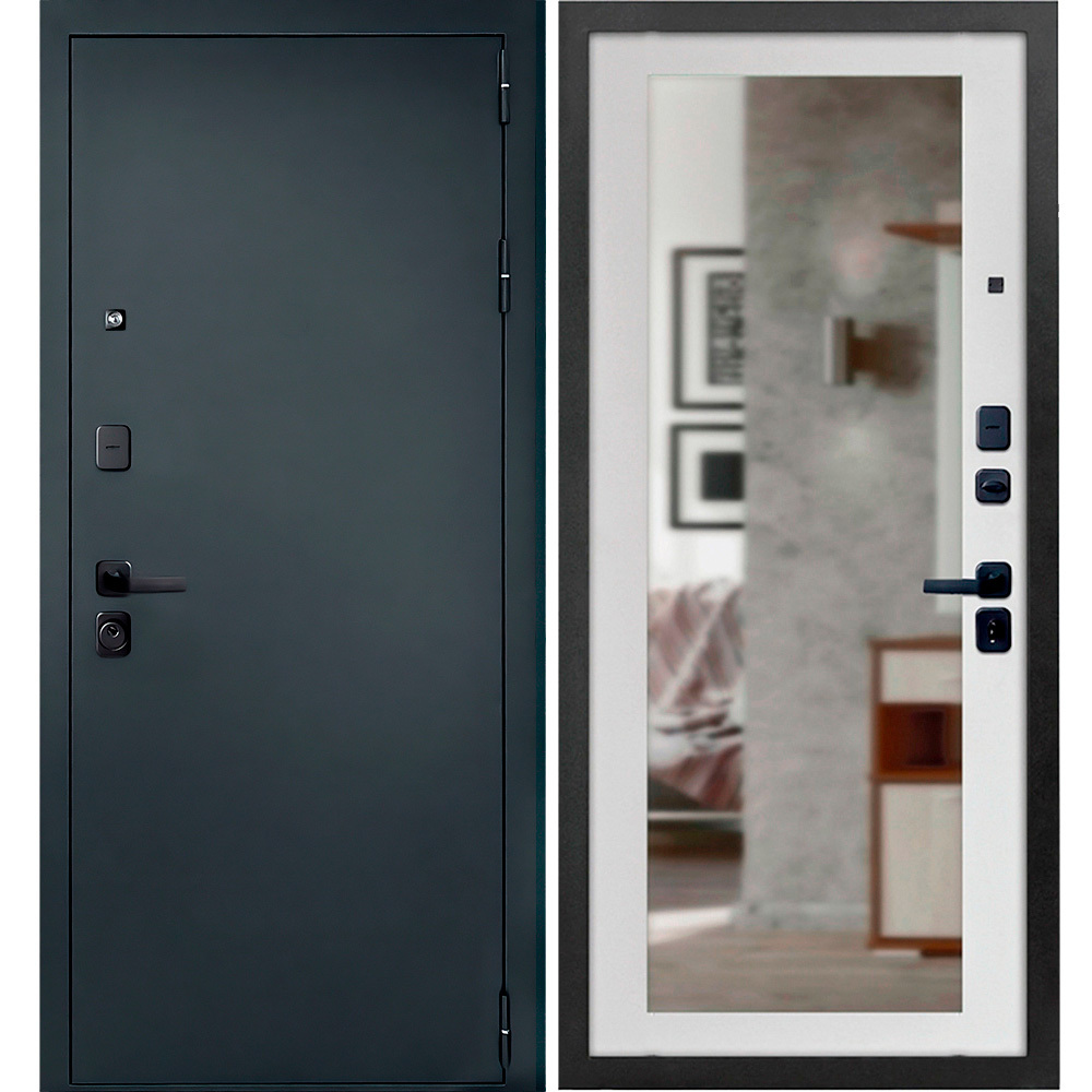 Дверь входная Дверной континент Брест правая антик серебро — белый матовый с зеркалом 960х2050 мм