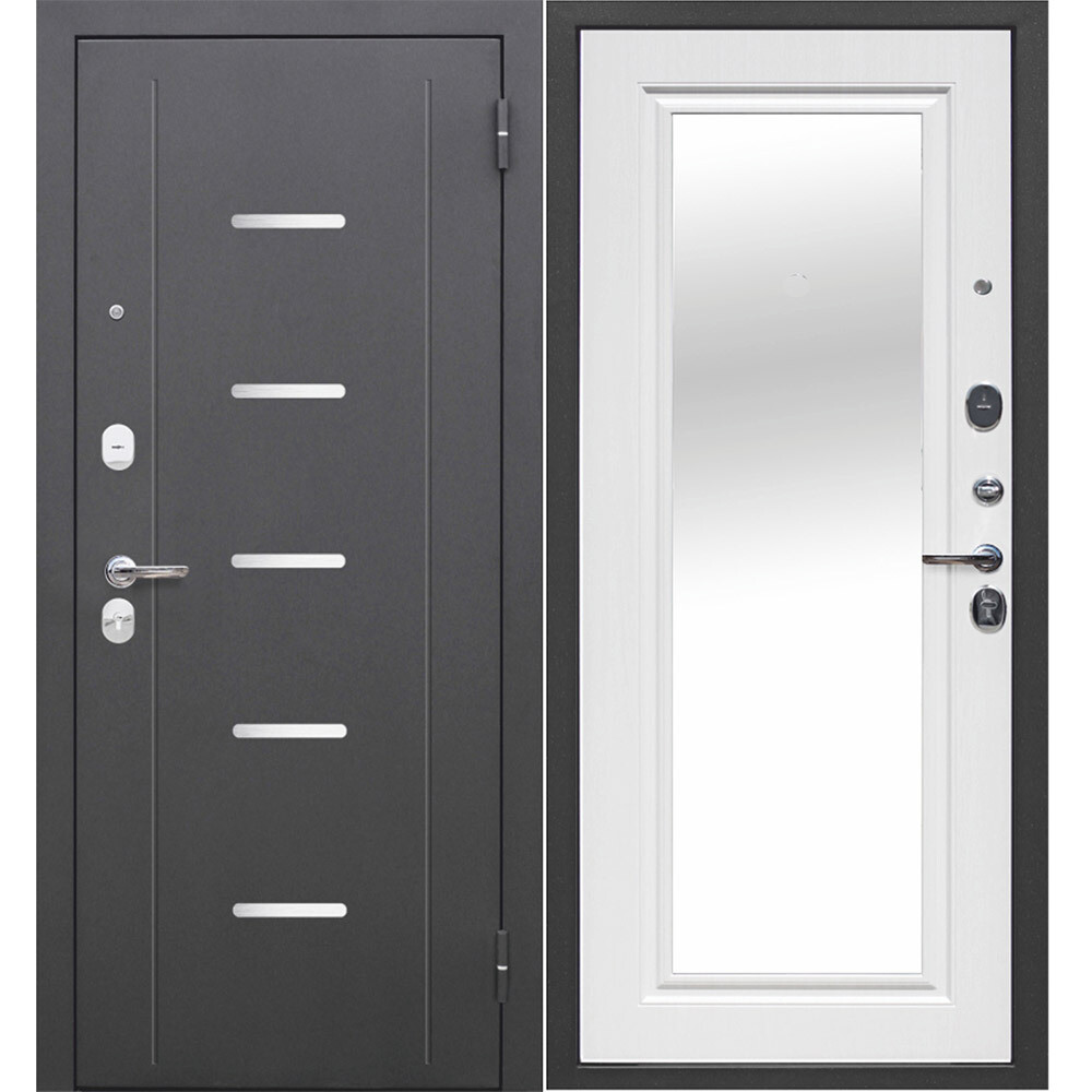 Дверь входная Ferroni Гарда 7,5СМ правая антик серебро — белый ясень с зеркалом 960х2050 мм