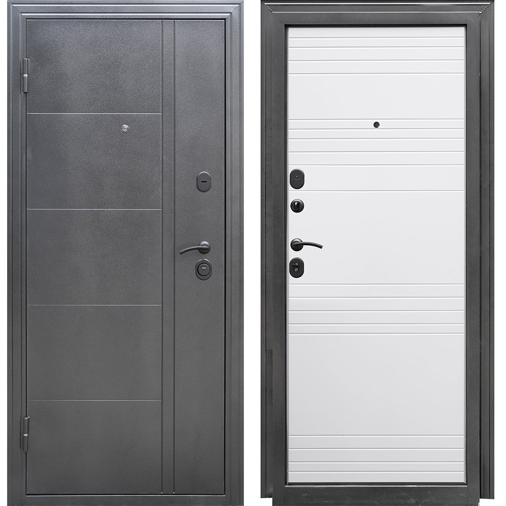 Предназначена для установки в жилых и общественных зданиях в качестве входной двери внутри помещения. Полотно изготовлено из стали. С внутренней стороны облицовано фрезерованной МДФ-панелью толщиной 8 мм. Стальной лист 1 мм с атмосферостойким порошковым покрытием цвета «антик серебро»; панель МДФ, толщиной 8 мм в цвете «белый софт»; наполнение базальтовая плита.