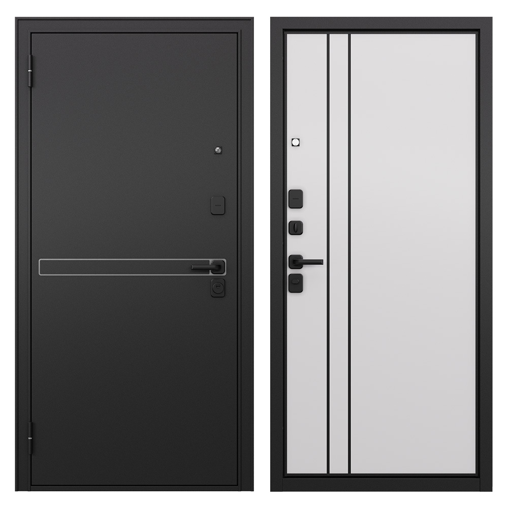 Дверь входная Mastino Райд левая черный муар металлик — белый софт 860х2050 мм