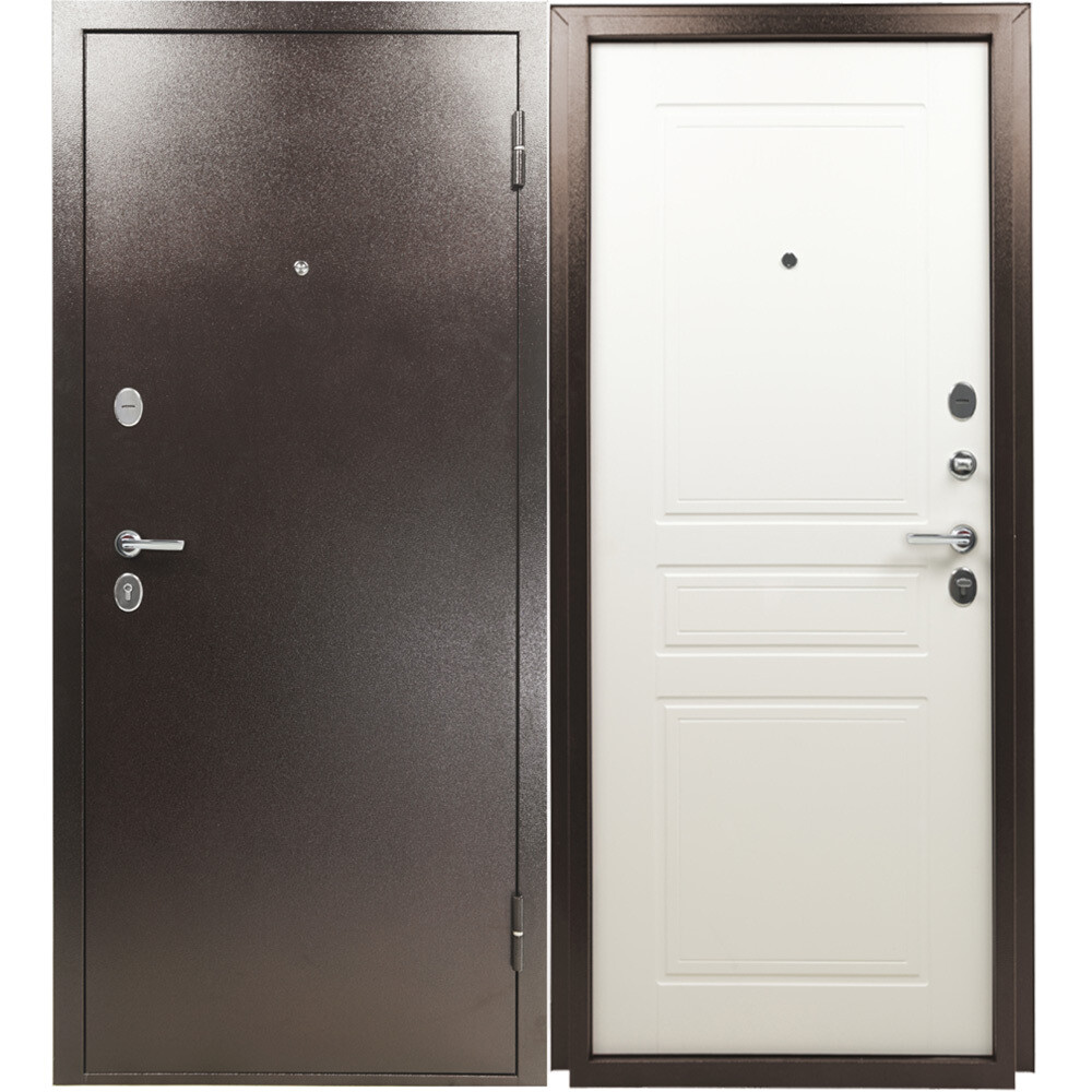 Главная / Каталог / Финишная отделка / Двери / Двери входные металлические / Дверь входная Промет Марс/Титан рационалист правая медный антик — ясень белый 960х2050 мм