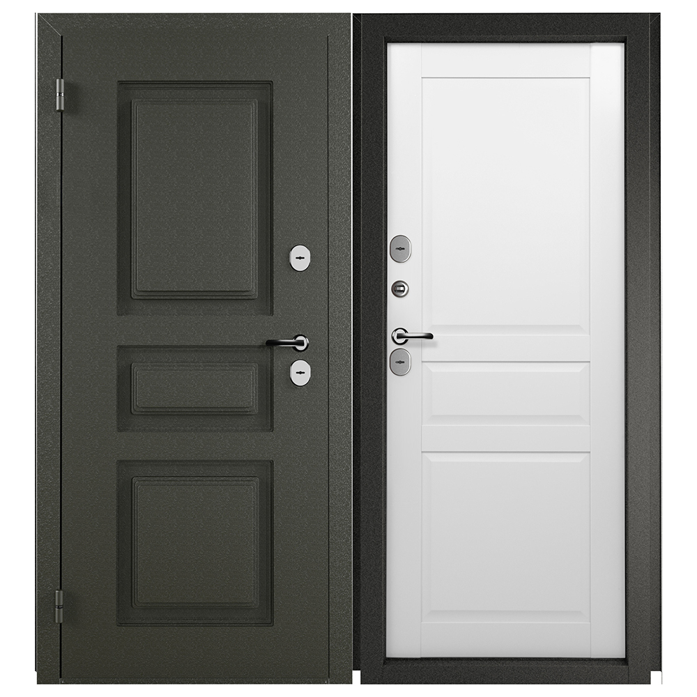 Дверь входная с терморазрывом Промет Норд левая букле графит — нубук белый 980х2050 мм