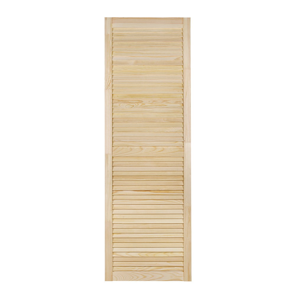 Дверь жалюзийная, хвоя сорт А. Дверь может быть использована в гардеробных, шкафах, прихожих, в туалете и ванных комнатах, в кухне и на кухонных гарнитурах. Фасады изготовлены из хвойных пород деревьев с соблюдением требуемых стандартов.