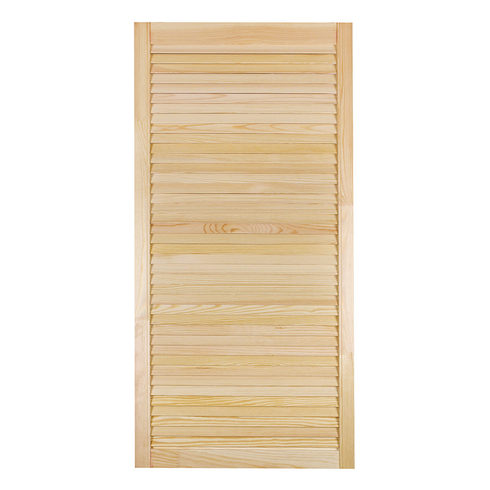 Дверь жалюзийная, хвоя сорт А. Дверь может быть использована в гардеробных, шкафах, прихожих, в туалете и ванных комнатах, в кухне и на кухонных гарнитурах. Фасады изготовлены из хвойных пород деревьев с соблюдением требуемых стандартов.