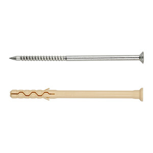 Нейлон обеспечивает надежное сцепление с материалом основания. Резьбовой оцинкованный гвоздь повышенной прочности заранее установлен в дюбель.