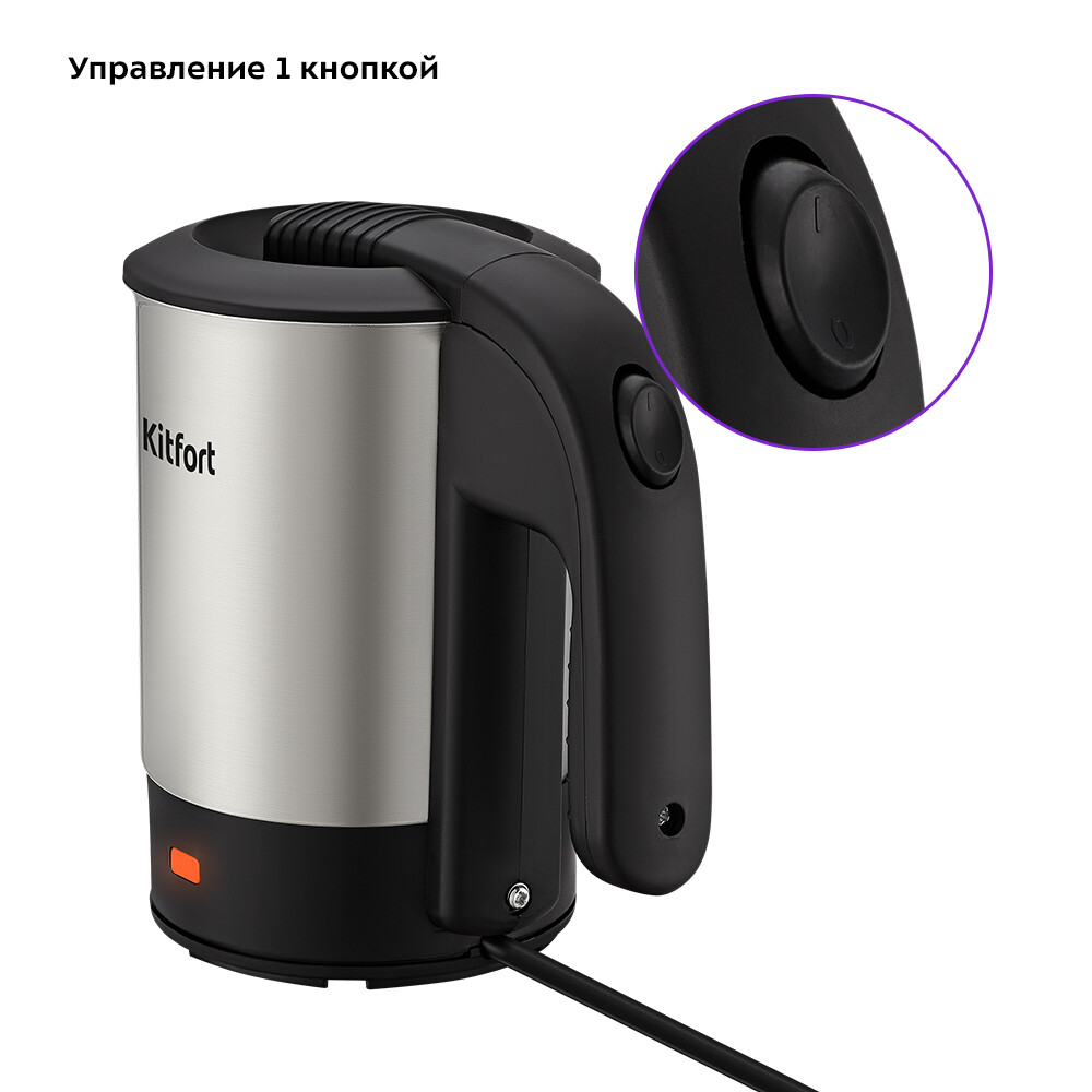 Электрический чайник Kitfort КТ-6190 объемом 0,5 л предназначен для кипячения воды дома, в офисе, на даче. Мощность прибора позволяет использовать его в домах со слабой проводкой.