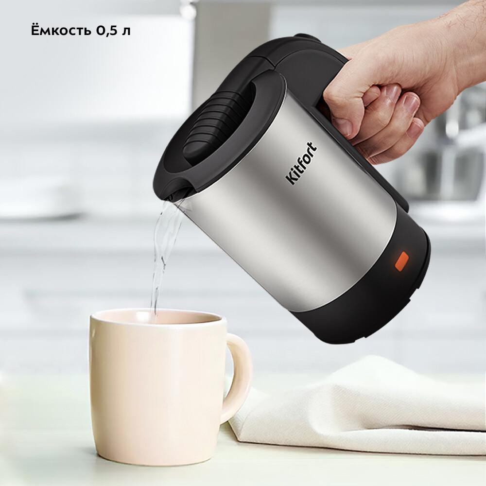 Электрический чайник Kitfort КТ-6190 объемом 0,5 л предназначен для кипячения воды дома, в офисе, на даче. Мощность прибора позволяет использовать его в домах со слабой проводкой. Чайник компактный, поэтому не займет много места, если брать его с собой.