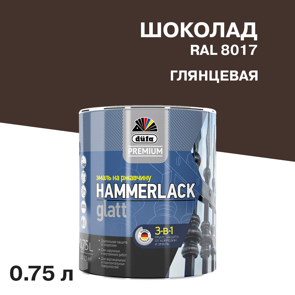 Эмаль по ржавчине 3в1 Dufa Premium Hammerlack шоколад RAL 8017 глянцевая 0,75 л