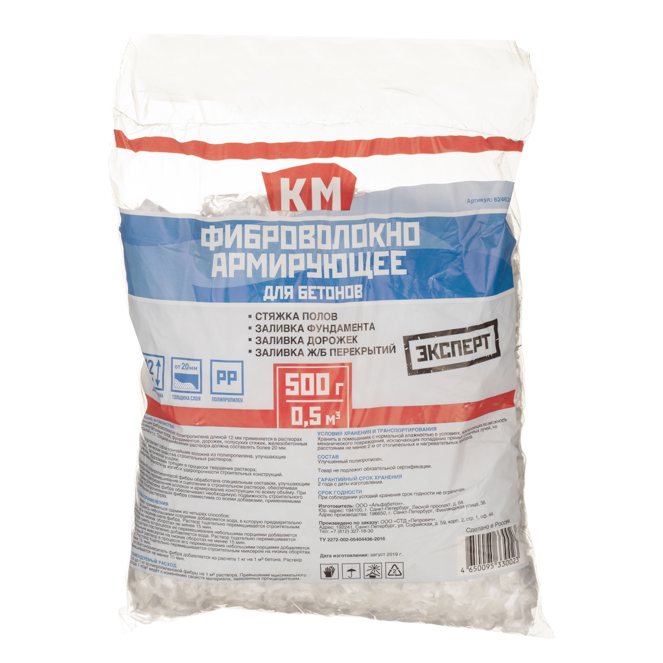 Фиброволокно армирующее для бетонов полипропиленовое КМ Эксперт 0,5 кг
