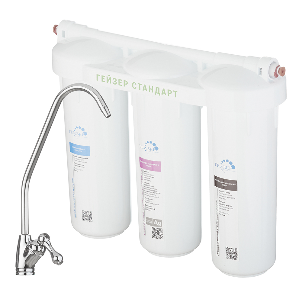 Фильтр Гейзер Стандарт специально разработан для регионов с мягкой водой (низкий уровень минерализации), предназначен для доочистки питьевой воды от хлора, тяжелых металлов, органических соединений, бактерий и других примесей.