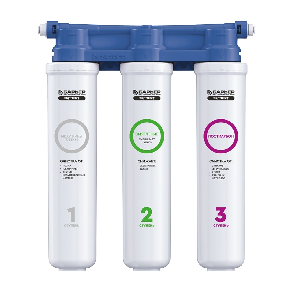 Фильтр для воды Барьер Эксперт Слим Жесткость трехступенчатый проточный без крана 5 мкм