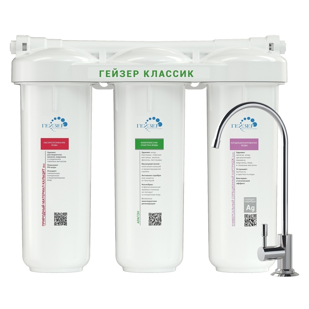 Фильтр для воды Гейзер Классик трехступенчатый проточный с краном 0,01-3,5 мкм 10SL