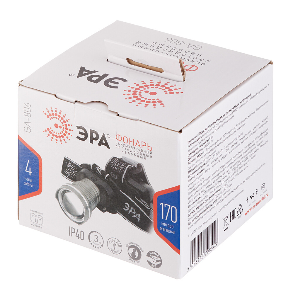 Фонарь налобный Эра светодиодный 1 LED 5 Вт аккумуляторный Li-Ion пластик/алюминий 3 режима (Б0039626)