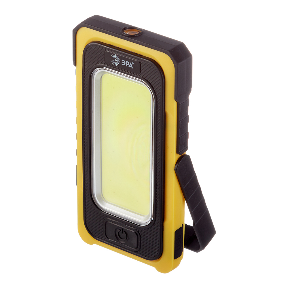 Светодиодный аккумуляторный фонарь ЭРА RA-811 с 2 типами подзарядки — 1) от электросети через USB-кабель (в комплекте); 2) при помощи встроенной солнечной батареи. LED-фонарь входит в популярную серию ЭРА Практик, созданную специально для представителей рабочих профессий — строителей, монтажников, ремонтников, сантехников, электриков. Стильный ручной фонарик ЭРА RA-811 в плоском прямоугольном корпусе выполнен в традиционном для серии Практик сочетании цветов — черный + желтый. Есть эргономичная ручка-крючок для удобного переноса или подвеса фонаря. Магниты на корпусе позволяют с легкостью фиксировать ЭРА Практик RA-811 на металлических поверхностях. Прорезиненные вставки защищают изделие при возможных падениях и ударах, которые неизбежны в рабочем процессе. Емкий литиевый аккумулятор 6000 мАч сохранит заряд на 8 часов при непрерывном использовании фонаря. Индикатор заряда/разряда батареи позволит контролировать степень подзарядки ручного фонарика. Фонарь ЭРА Практик RA-811 можно применять как powerbank — подзаряжать от него мобильный телефон или небольшие портативные гаджеты. Яркое ровное освещение создает светодиодная плата формата COB с 36 современными светодиодами мультикристалл. Световой потолок фонарика — 1500 Лм. Широкая LED-плата формирует обширный заливающий свет. В передней части фонаря установлен дополнительный мощный светодиод с направленным лучом дальностью до 45 метров.