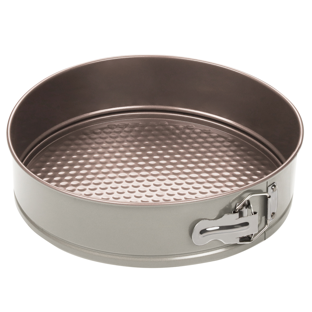 Изготовленная из прочного и высококачественного материала, разъемная форма обладает отличной прочностью и долговечностью. Она не деформируется под воздействием высоких температур, что позволяет безопасно использовать ее в духовке до 230 градусов. Благодаря антипригарному покрытию Goldflon, выпечка легко отделяется от стенок кухонного инвентаря, что облегчает процесс извлечения готового изделия.